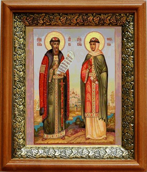 Икона Петр и Феврония в киоте с басмой Виноградная Лоза (UV-печать)(33141)