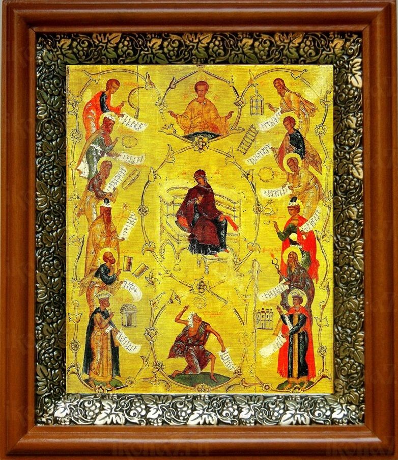 Икона Похвала Пресвятой Богородицы в киоте с басмой Виноградная Лоза (UV-печать)(30775)