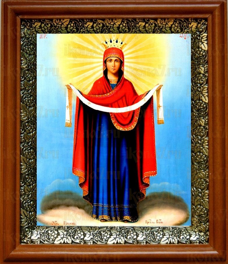 Икона Покров Пресвятой Богородицы в киоте с басмой Виноградная Лоза (UV-печать)(30768)