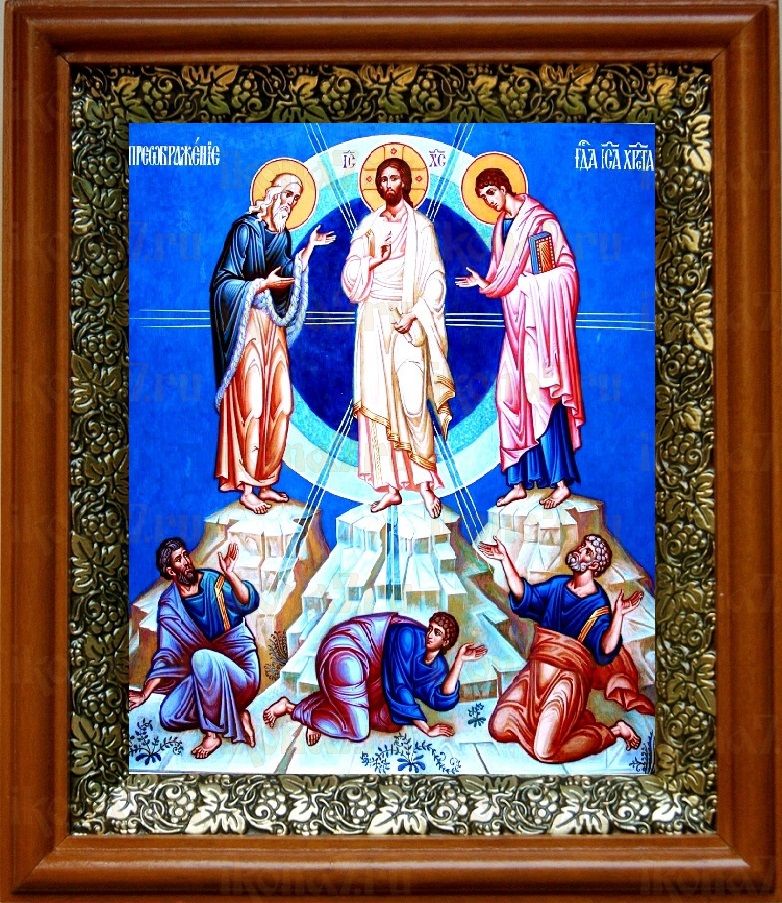Икона Преображение Господне в киоте с басмой Виноградная Лоза (UV-печать)(30781)