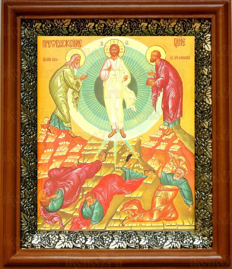 Икона Преображение Господне в киоте с басмой Виноградная Лоза (UV-печать)(30779)