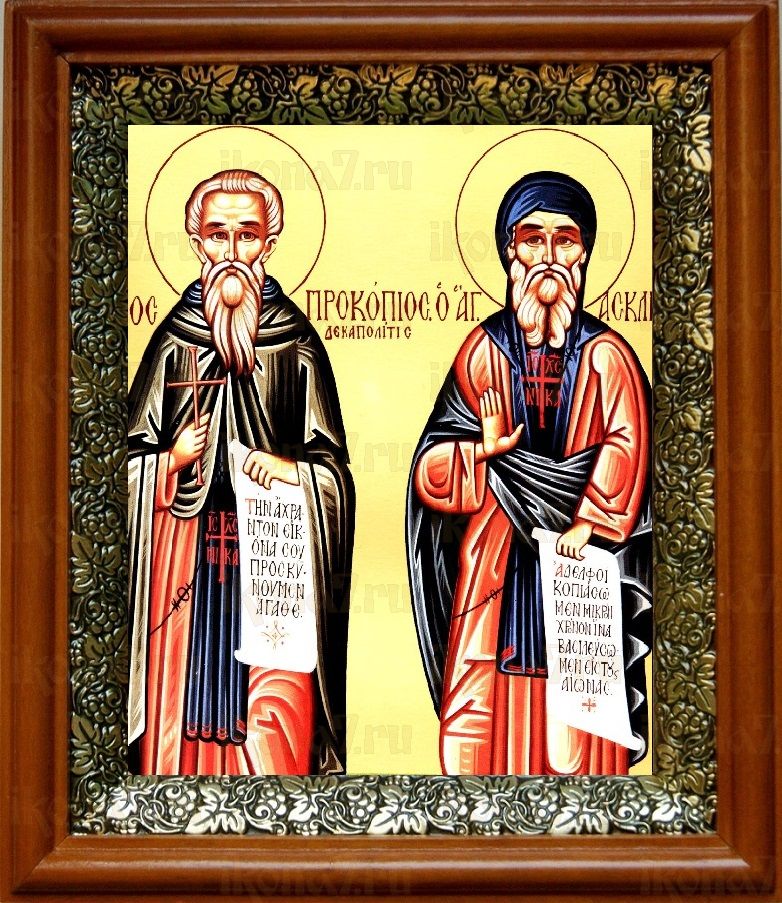 Икона Прокопий Декаполит в киоте с басмой Виноградная Лоза (UV-печать)(30782)