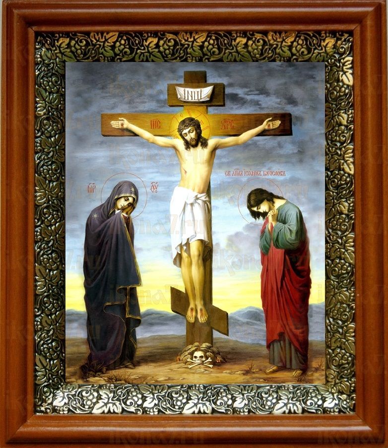 Икона Распятие Христа в киоте с басмой Виноградная Лоза (UV-печать)(30798)