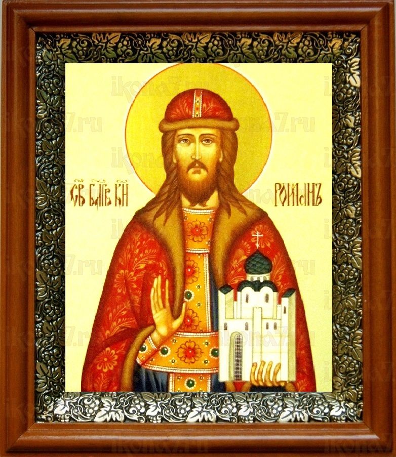 Икона Роман Рязанский в киоте с басмой Виноградная Лоза (UV-печать)(30809)