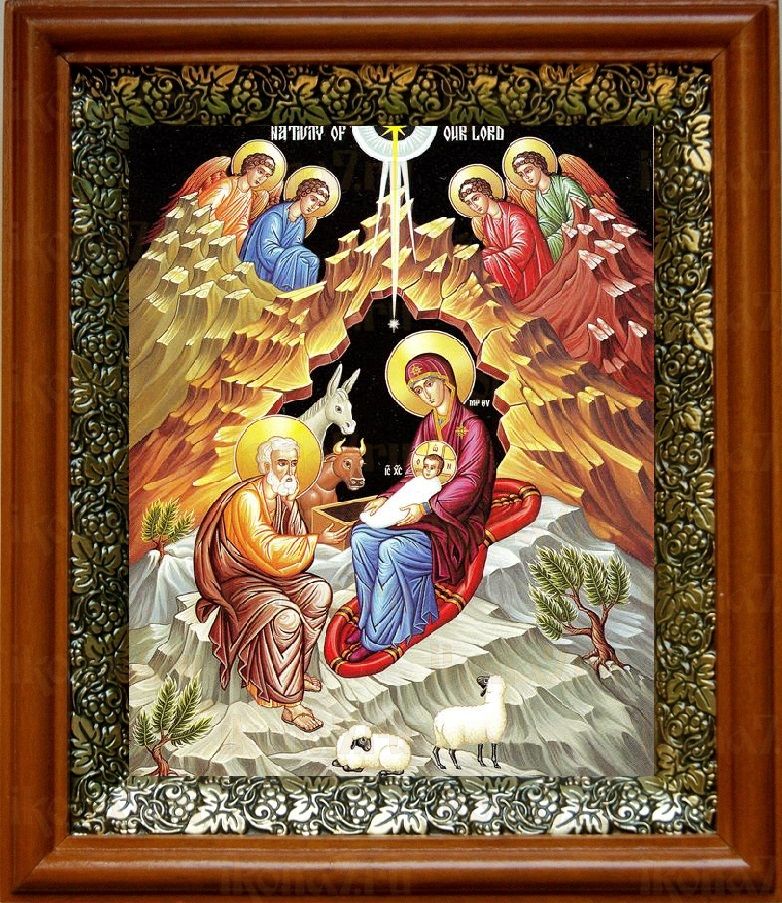 Икона Рождество Христово в киоте с басмой Виноградная Лоза (UV-печать)(30807)