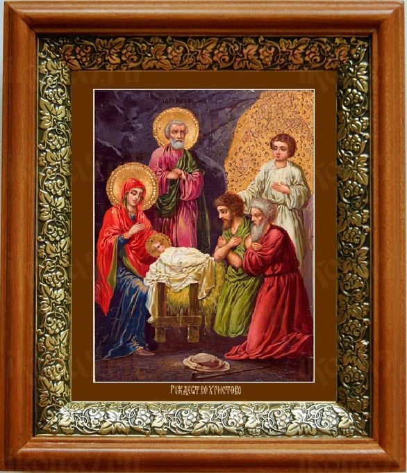Икона Рождество Христово в киоте с басмой Виноградная Лоза (UV-печать)(33151)