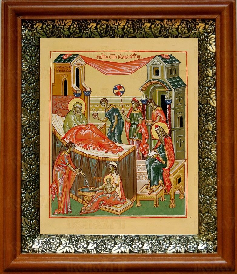 Икона Рождество Иоанна Предтечи в киоте с басмой Виноградная Лоза (UV-печать)(30801)
