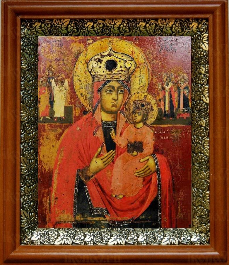 Рудненская икона Божьей Матери в киоте с басмой Виноградная Лоза (UV-печать)(30815)