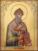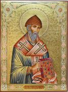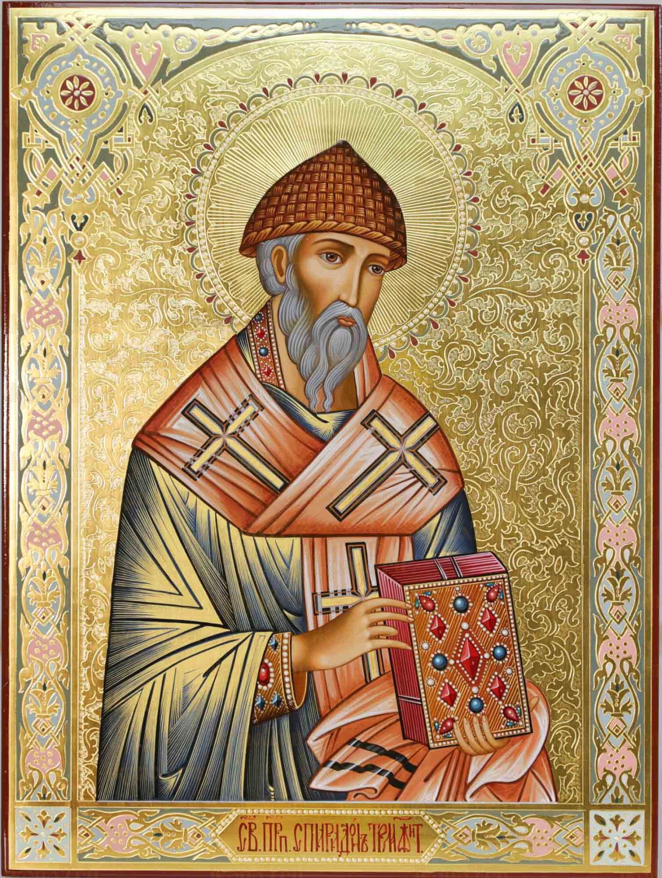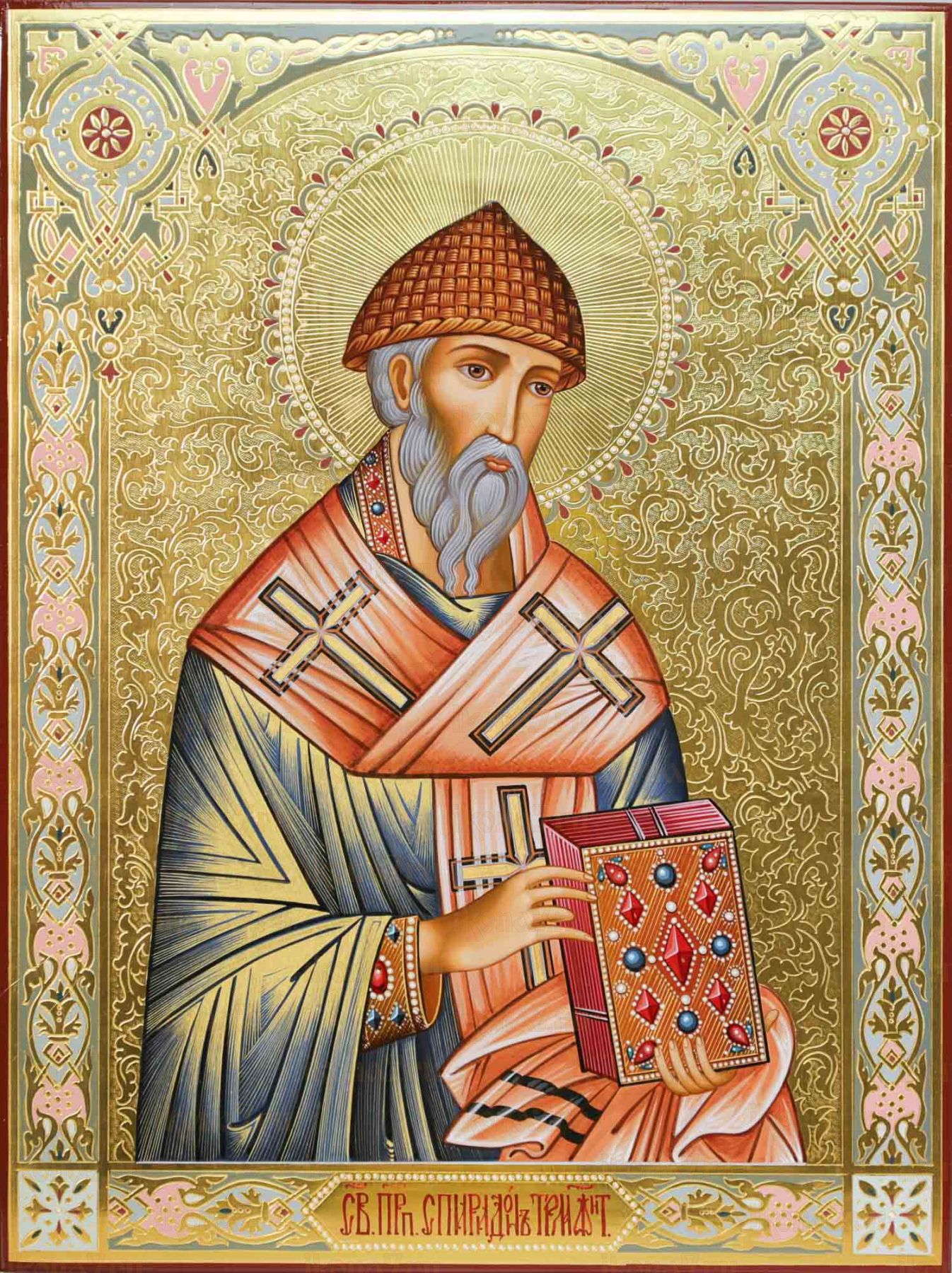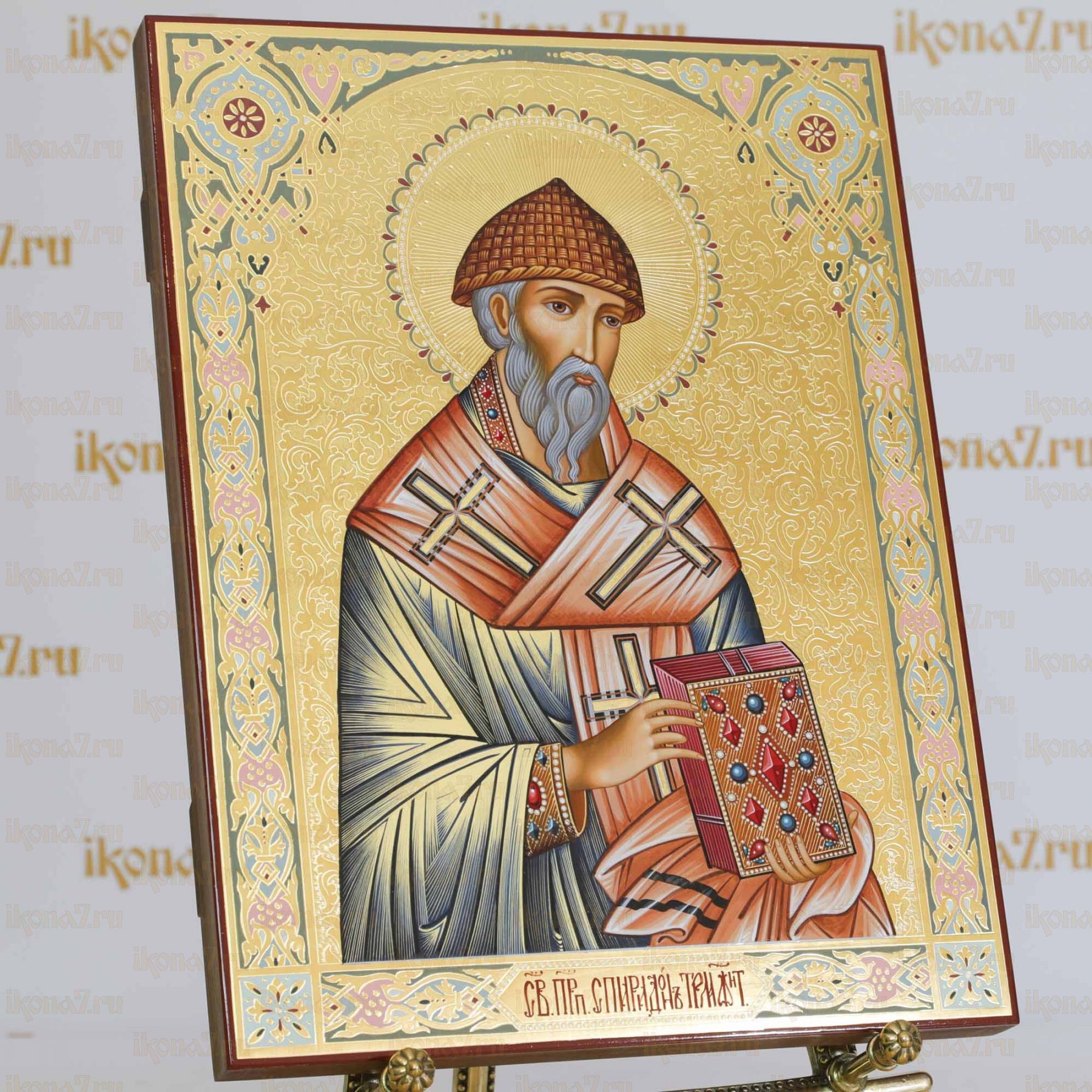 Рукописная Икона Спиридон Тримифунтский 30х40 см поясная (Мстеры, сусальное золото и чеканка)