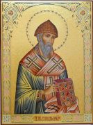 В наличииРукописная Икона Спиридон Тримифунтский 30х40 см поясная (Мстеры, сусальное золото и чеканка)