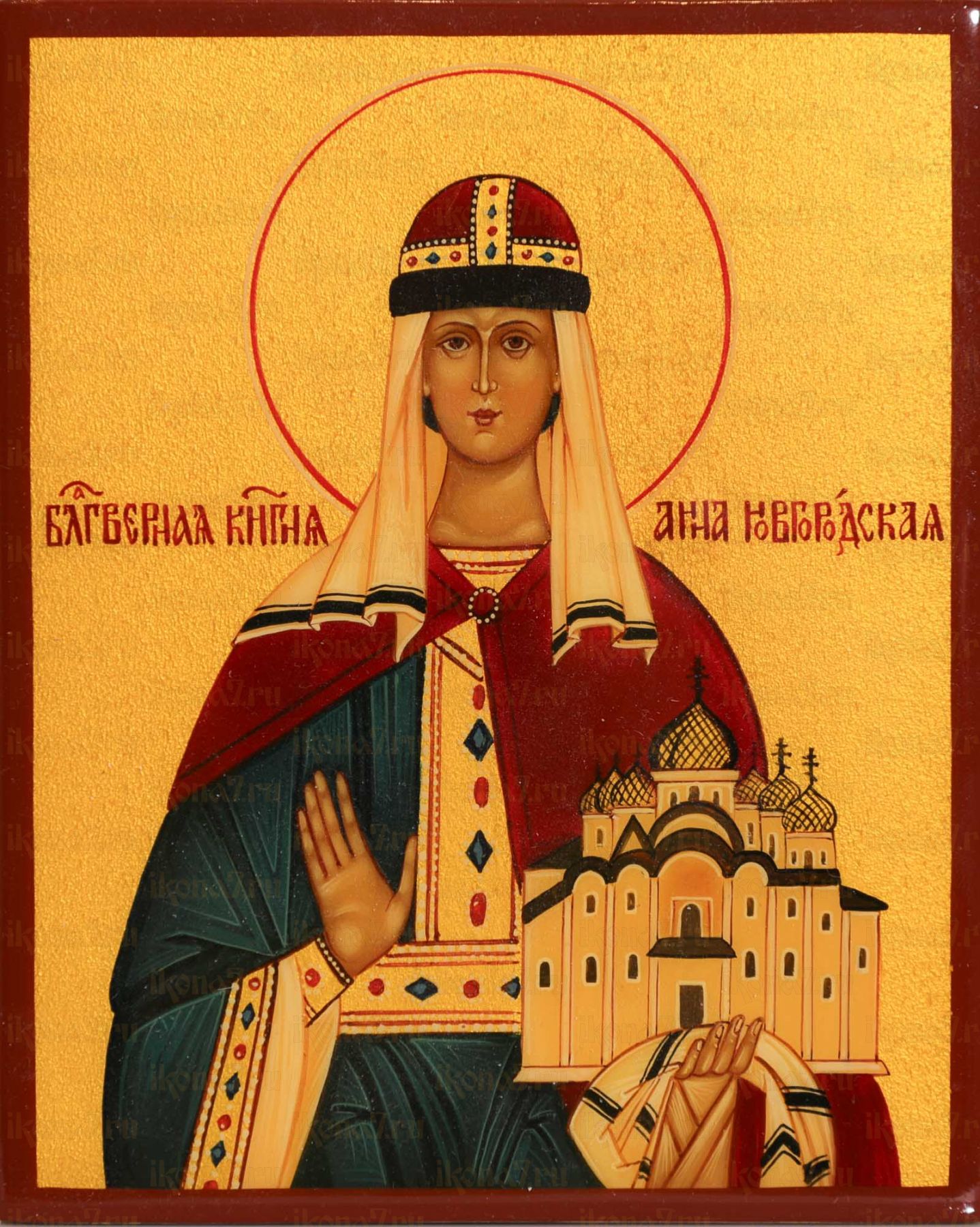 Рукописная икона Анна Новгородская 17х21см (с золочением)