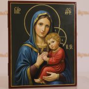 Дополнительно к иконе можно приобрести киот любой сложности. От недорогого киота из березы с простым багетом до пропильного, ажурного с сусальным золотом из драгоценных пород дерева карельской березы, ясеня или дуба.