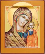 Дополнительно к иконе можно приобрести киот любой сложности. От недорогого киота из березы с простым багетом до пропильного, ажурного с сусальным золотом из драгоценных пород дерева карельской березы, ясеня или дуба.