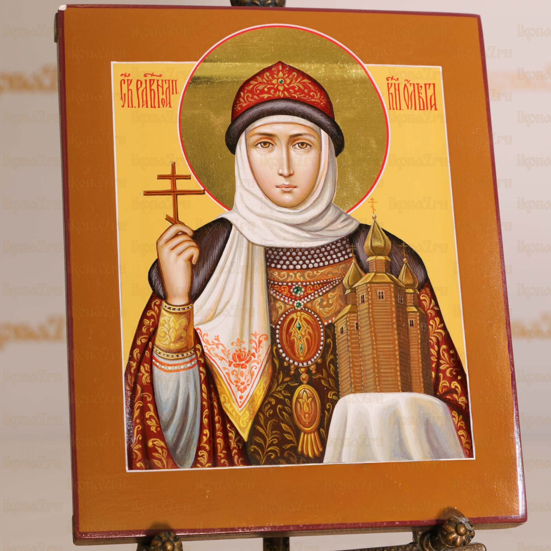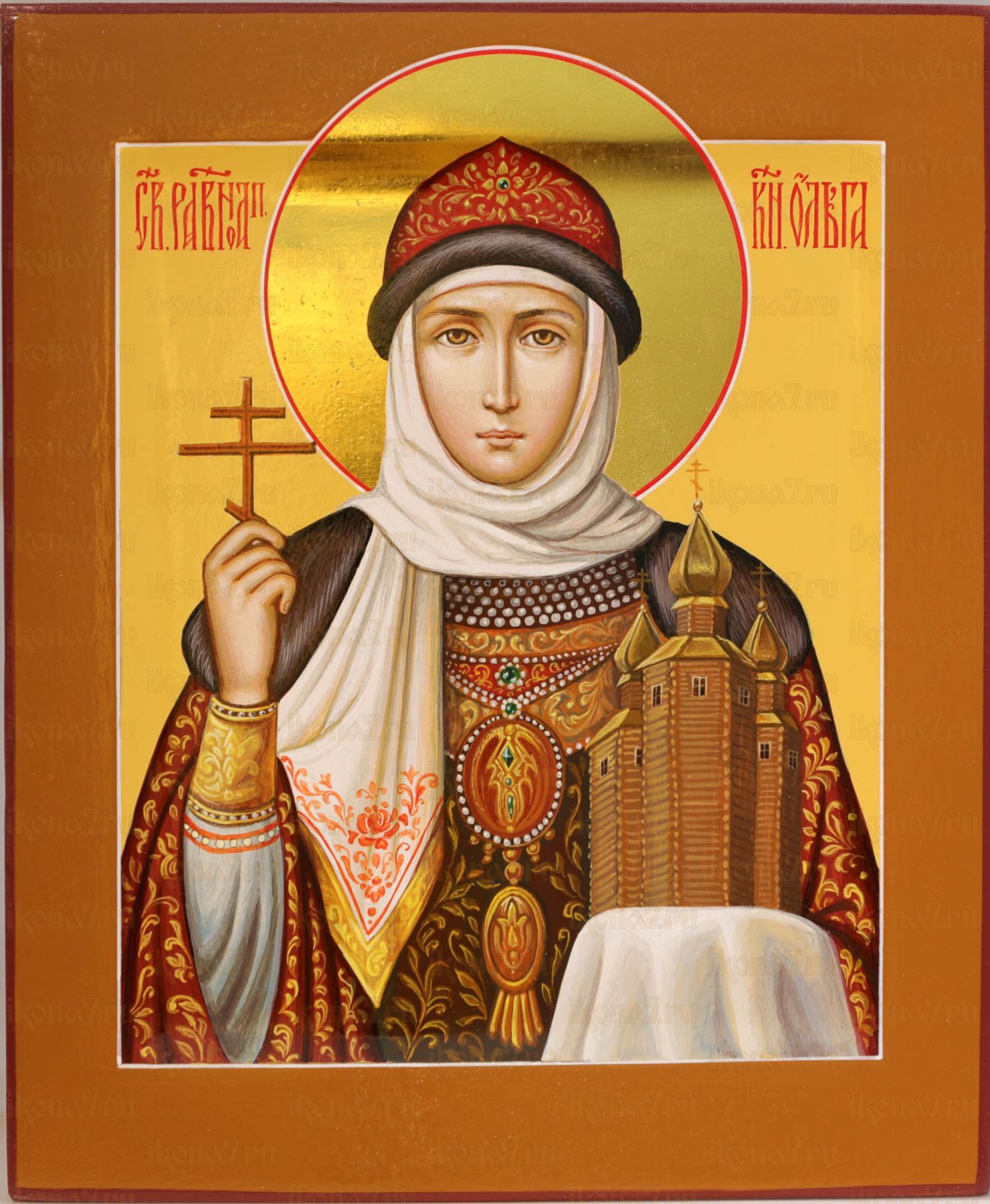 Рукописная икона Княгиня Ольга 17х21см (нимб сусальное золото с ковчегом)