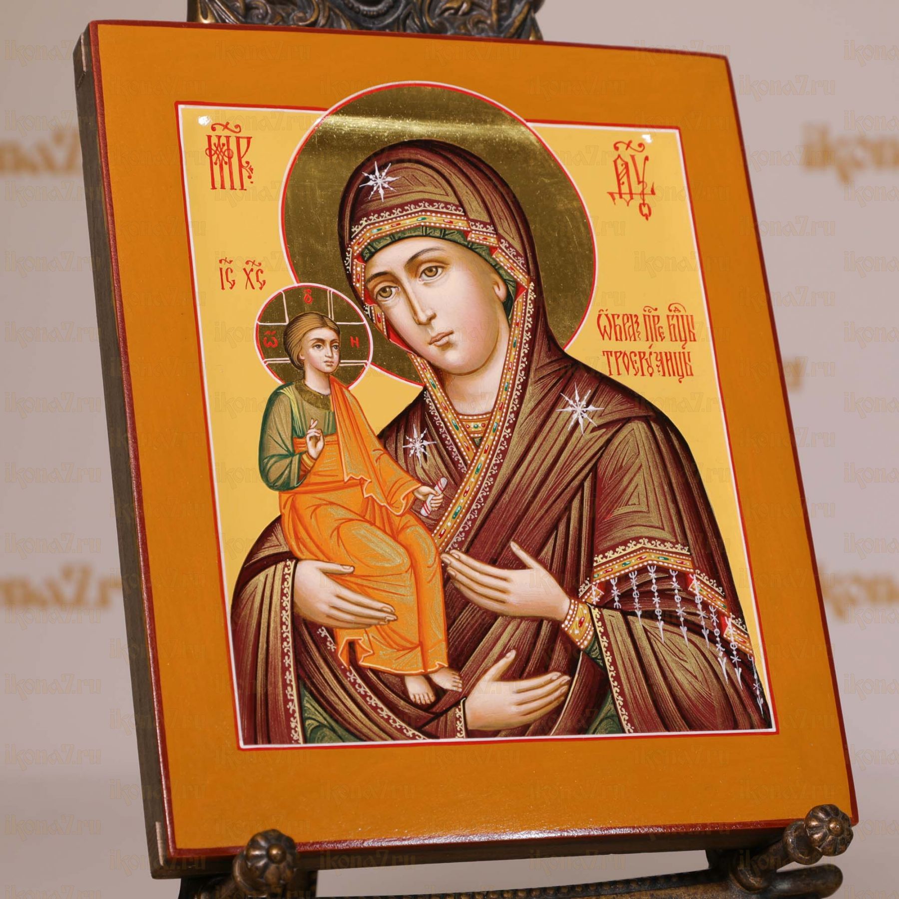 В наличии Рукописная икона Троеручица образ Богородицы 17х21см (нимб сусальное золото с ковчегом)