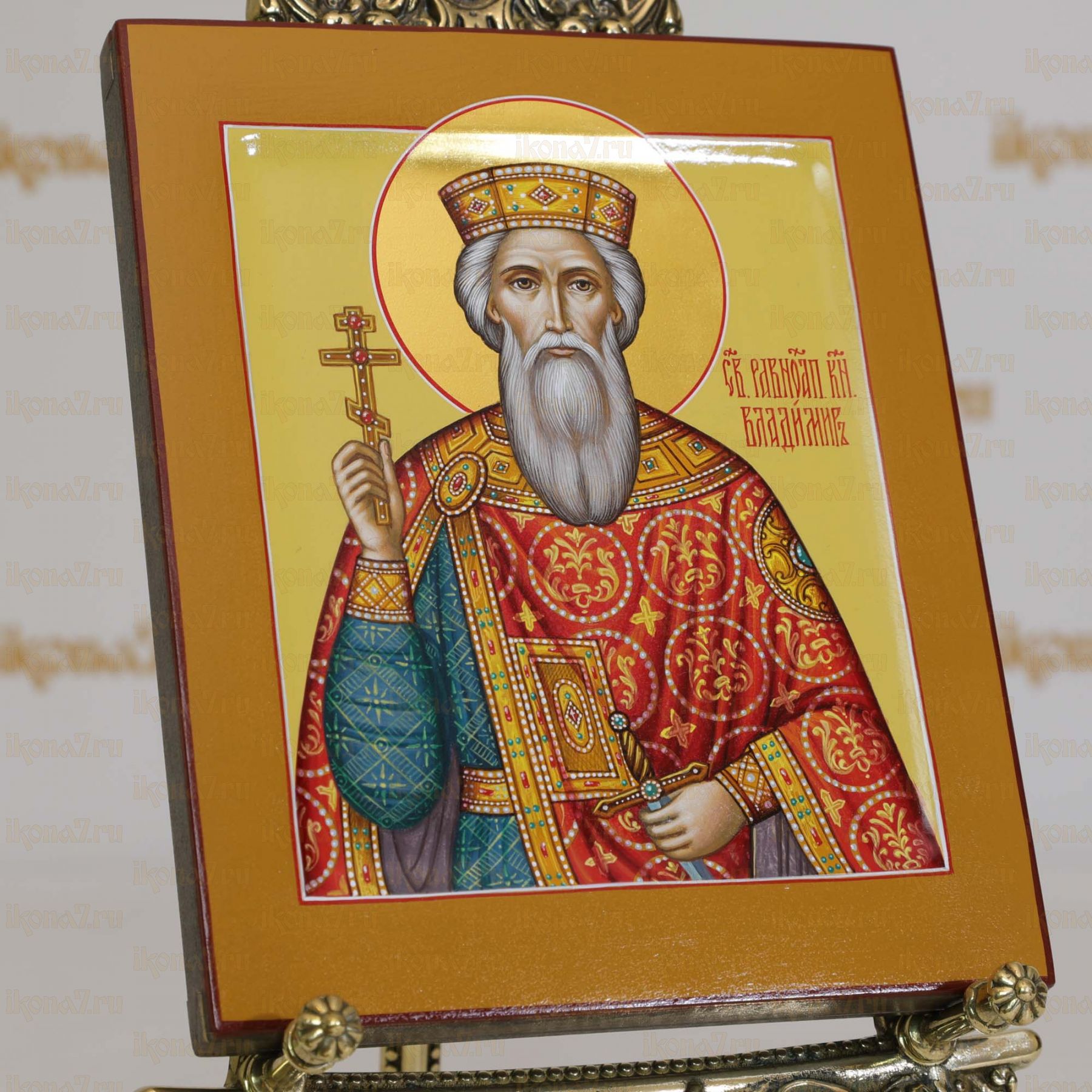 Рукописная икона князь Владимир 17х21см (ковчег, нимб-сусальное золото)