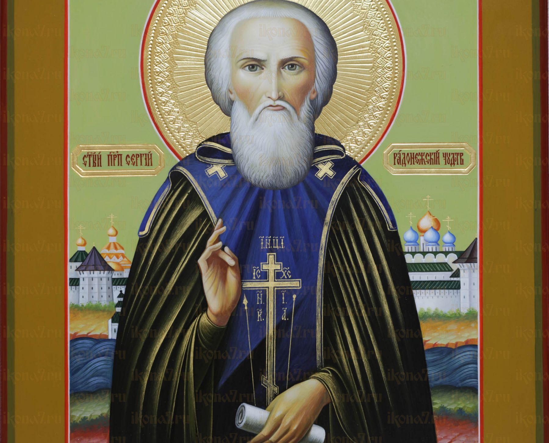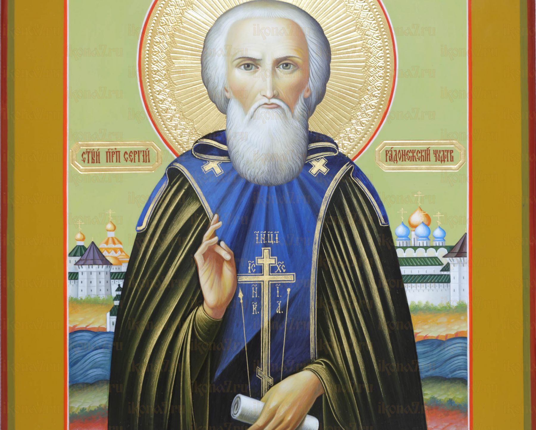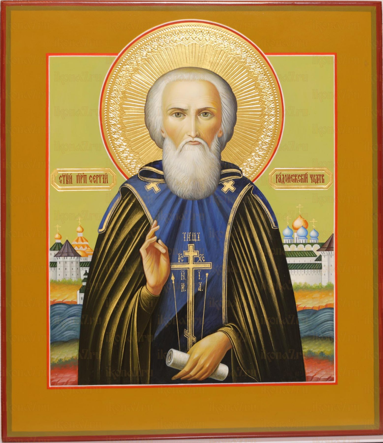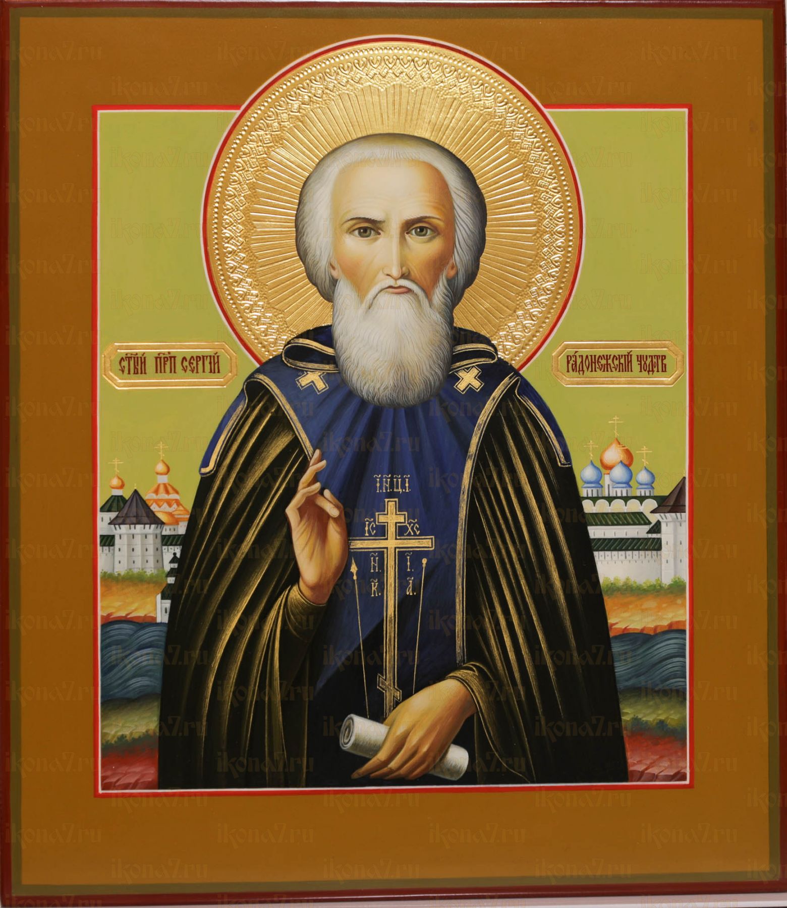 Сергий Радонежский 27х31см рукописная икона (Палех) (сусальное золото с чеканкой)