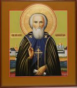 В наличии авторская рукописная икона Сергий Радонежский 27х31см (Палех) (сусальное золото с чеканкой) с подписью автора. Уровень письма - филигранное. Лак - полуматовый.