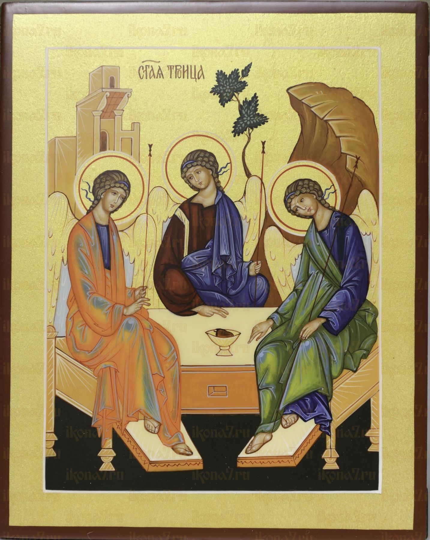 Троица 17х21 см (рукописная икона с золочением)(Вариант 2)