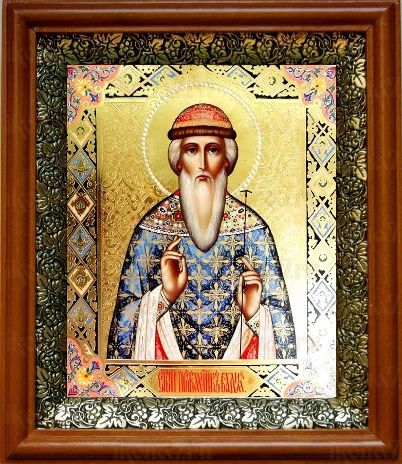 Икона Вадим Персидский в киоте с басмой Виноградная Лоза (UV-печать)(30144)