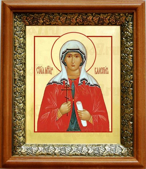 Икона Валентина Кесарийская в киоте с басмой Виноградная Лоза (UV-печать)(33035)