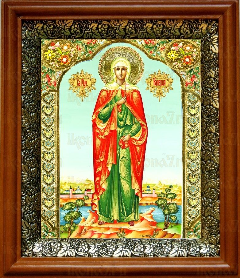 Икона Валерия Кесарийская в киоте с басмой Виноградная Лоза (UV-печать)(30147)