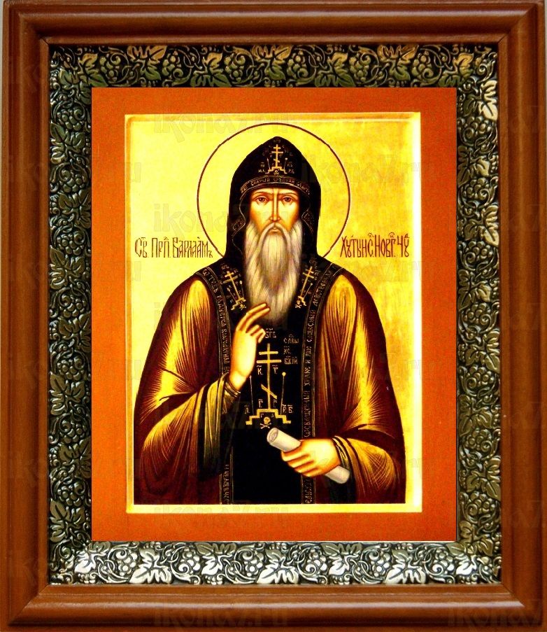 Икона Варлаам Хутынский в киоте с басмой Виноградная Лоза (UV-печать)(30154)