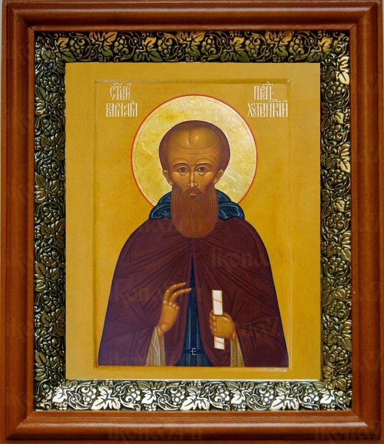Икона Варлаам Хутынский в киоте с басмой Виноградная Лоза (UV-печать)(30153)