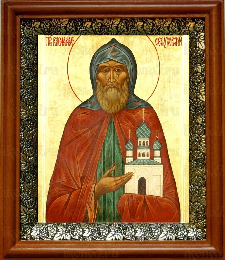 Икона Варлаам Серпуховской в киоте с басмой Виноградная Лоза (UV-печать)(30152)