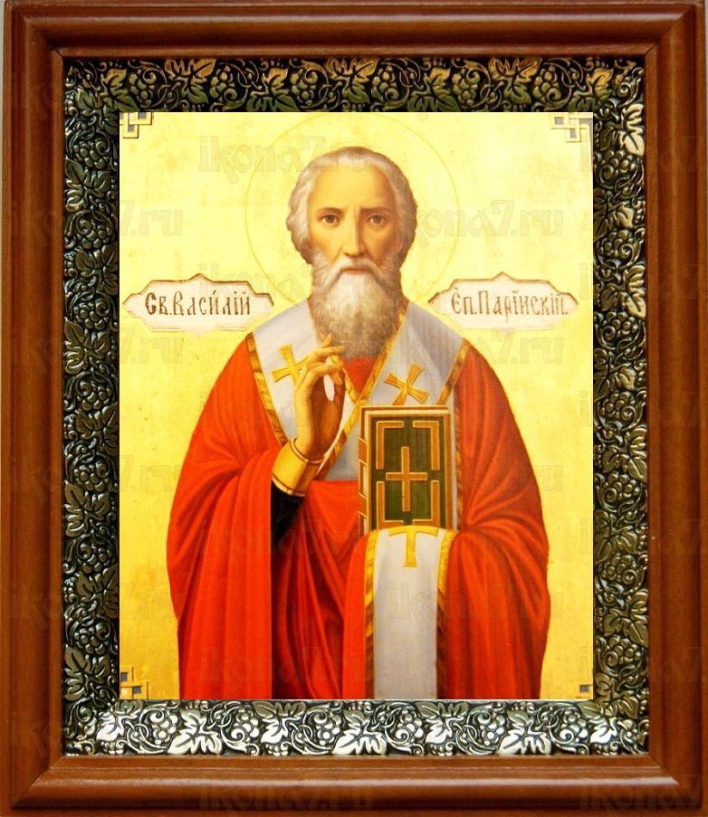 Икона Василий Парийский в киоте с басмой Виноградная Лоза (UV-печать)(30165)