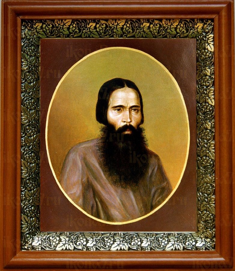 Икона Василий Павлово-Посадский в киоте с басмой Виноградная Лоза (UV-печать)(30164)