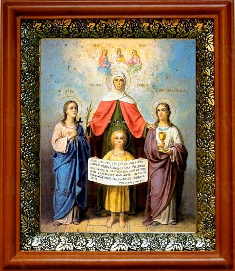 Икона Вера, Надежда, Любовь и София в киоте с басмой Виноградная Лоза (UV-печать)(33040)