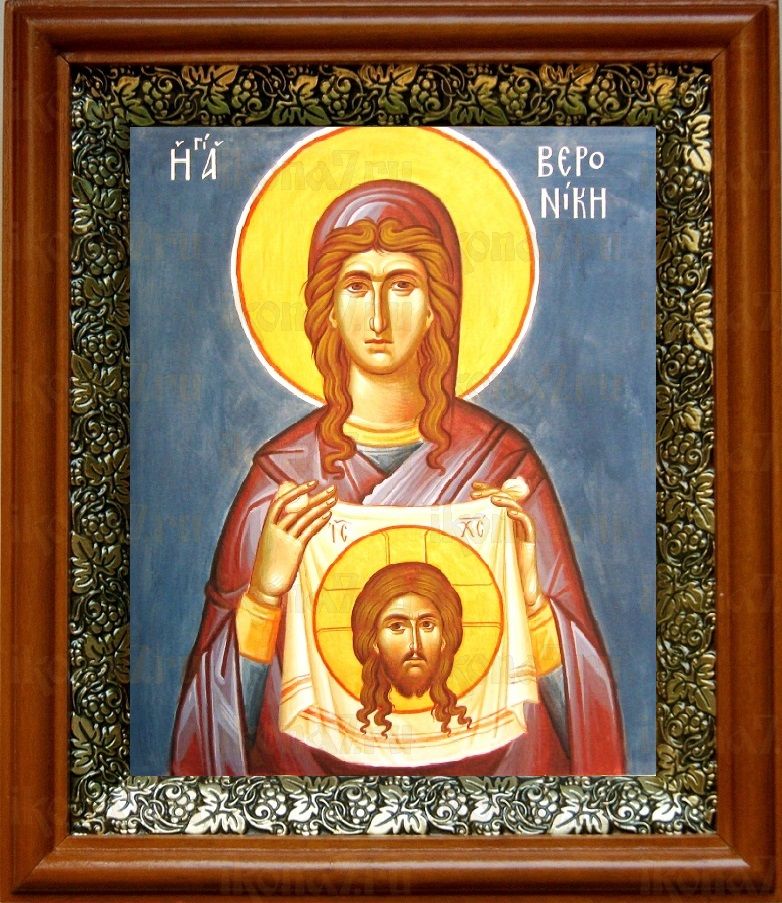 Икона Вероника Праведная в киоте с басмой Виноградная Лоза (UV-печать)(30177)