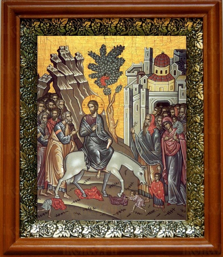 Икона Вход Господень в Иерусалим в киоте с басмой Виноградная Лоза (UV-печать)(30224)