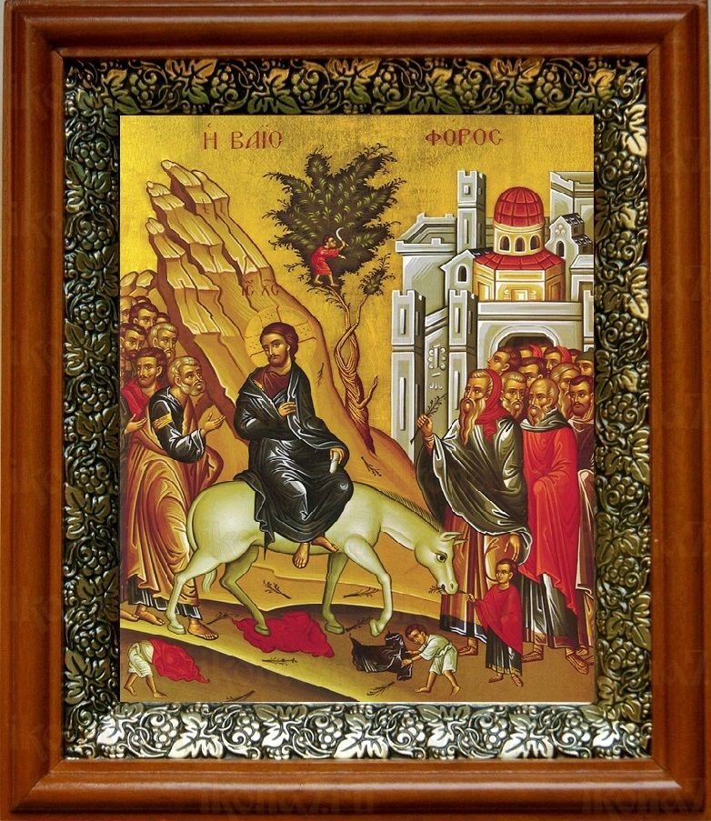 Икона Вход Господень в Иерусалим в киоте с басмой Виноградная Лоза (UV-печать)(30225)