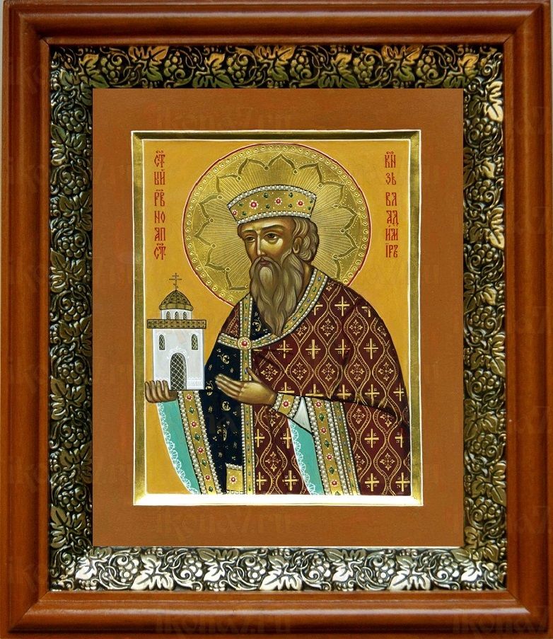 Икона Владимир в киоте с басмой Виноградная Лоза (UV-печать)(30191)