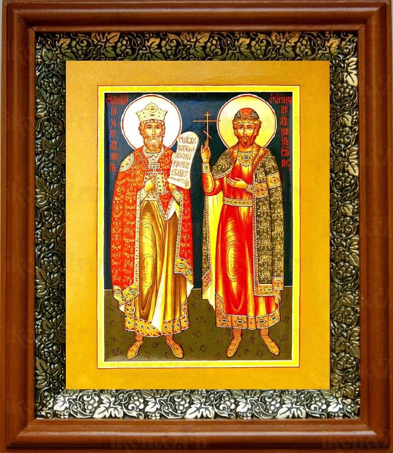 Икона Владимир Ржевский и князь Владимир в киоте с басмой Виноградная Лоза (UV-печать)(30193)