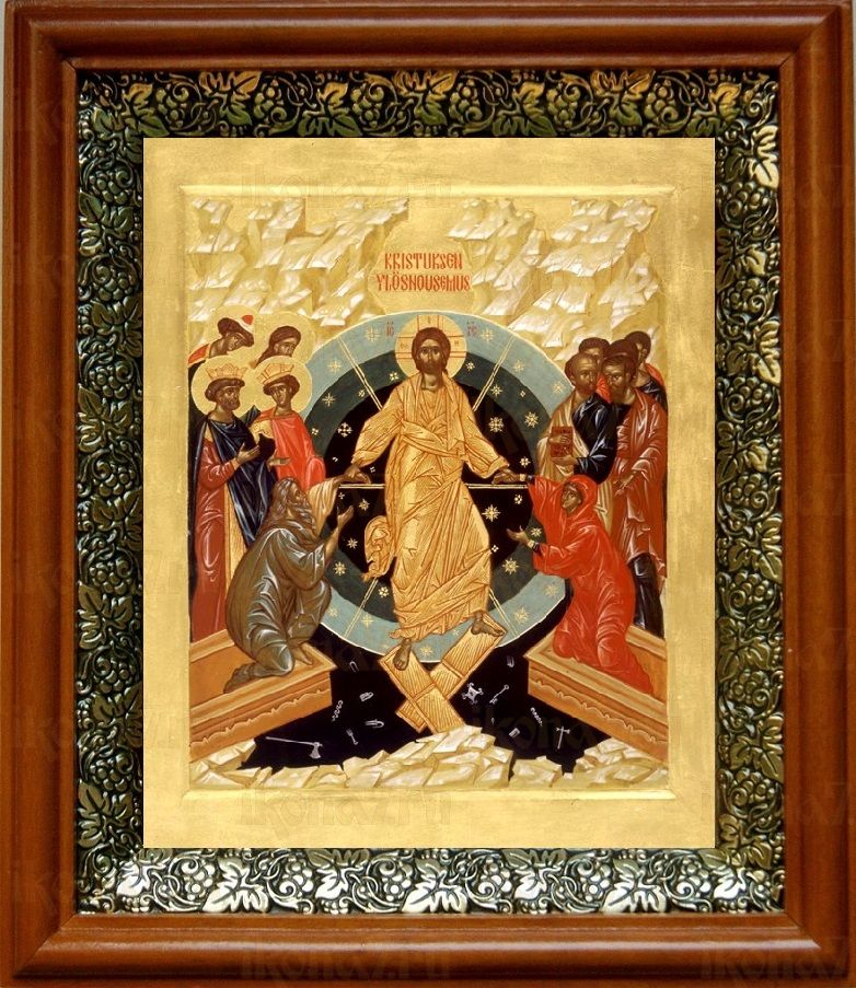Икона Воскресение Христово в киоте с басмой Виноградная Лоза (UV-печать)(30206)
