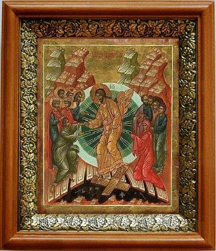 Икона Воскресение Христово в киоте с басмой Виноградная Лоза (UV-печать)(33050)