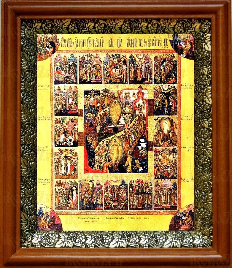 Икона Воскресение Христово с праздниками в киоте с басмой Виноградная Лоза (UV-печать)(30212)