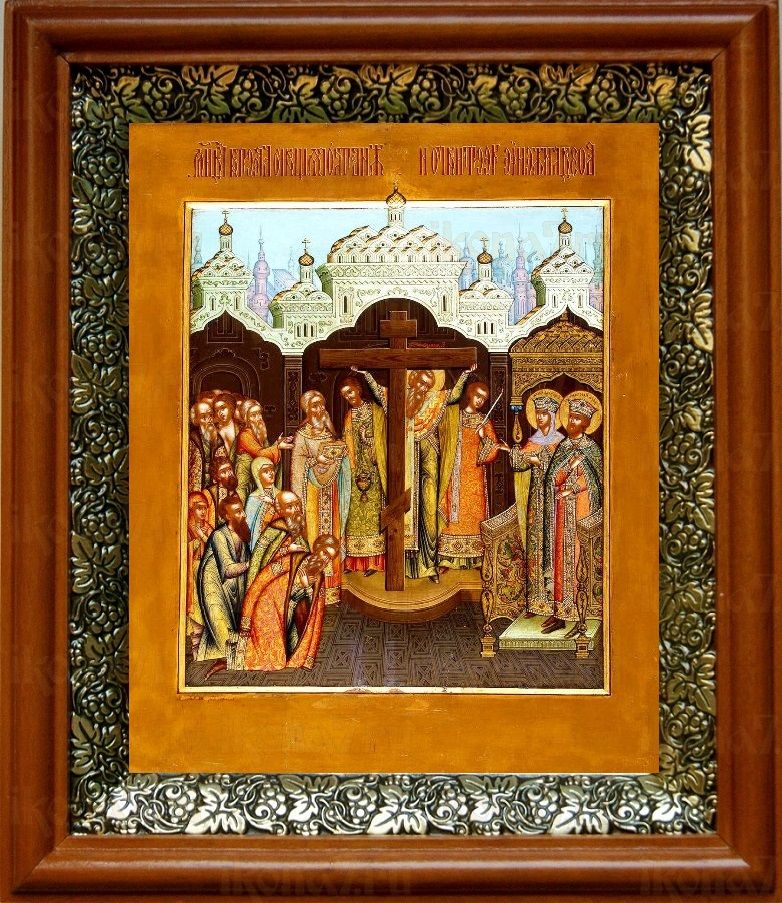 Икона Воздвижение креста Господня в киоте с басмой Виноградная Лоза (UV-печать)(30199)