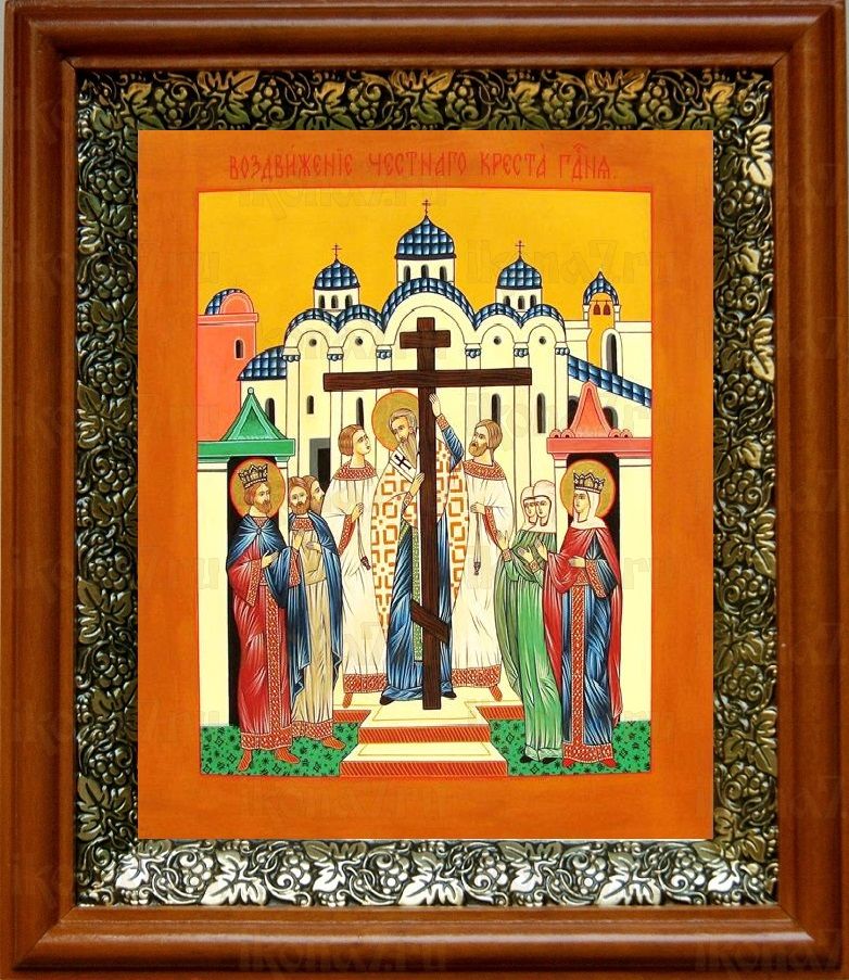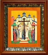 Икона Воздвижение креста Господня в киоте с басмой Виноградная Лоза (UV-печать)(30198)