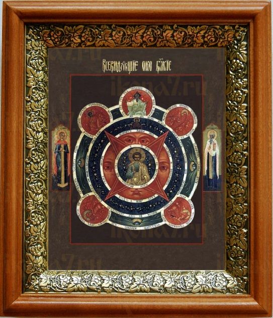 Икона Всевидящее Око в киоте с басмой Виноградная Лоза (UV-печать)(33051)