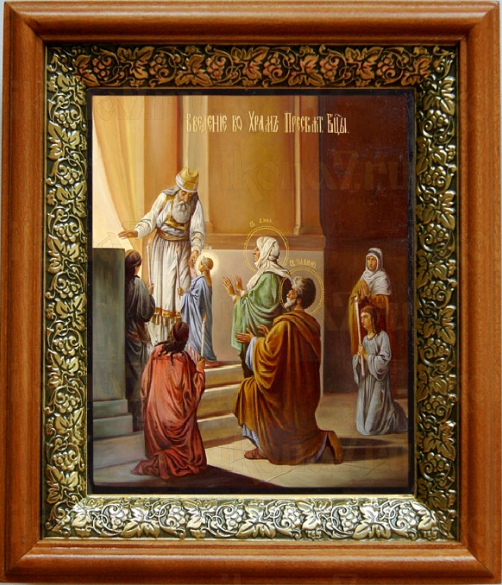 Икона Введение во храм Пресвятой Богородицы в киоте с басмой Виноградная Лоза (UV-печать)(33039)