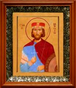 Икона Вячеслав Чешский в киоте с басмой Виноградная Лоза (UV-печать)(33054)