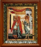 Икона Зачатие Иоанна Предтечи в киоте с басмой Виноградная Лоза (UV-печать)(30399)