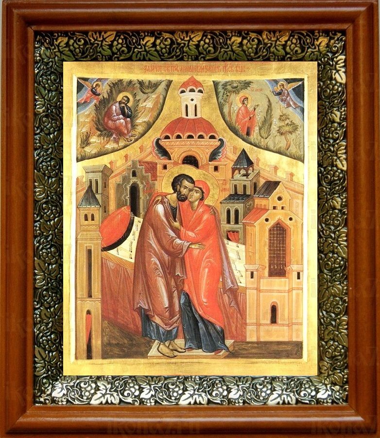 Икона Зачатие Пресвятой Богородицы в киоте с басмой Виноградная Лоза (UV-печать)(30400)