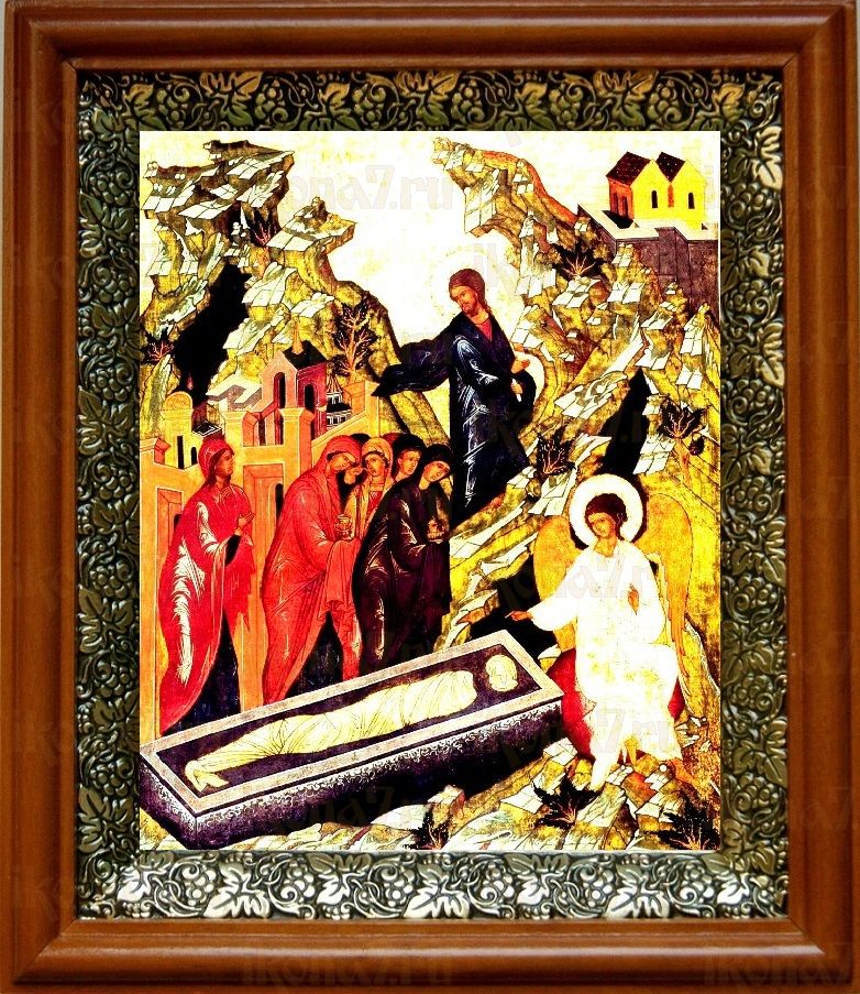 Икона Жены Мироносицы в киоте с басмой Виноградная Лоза (UV-печать)(30392)
