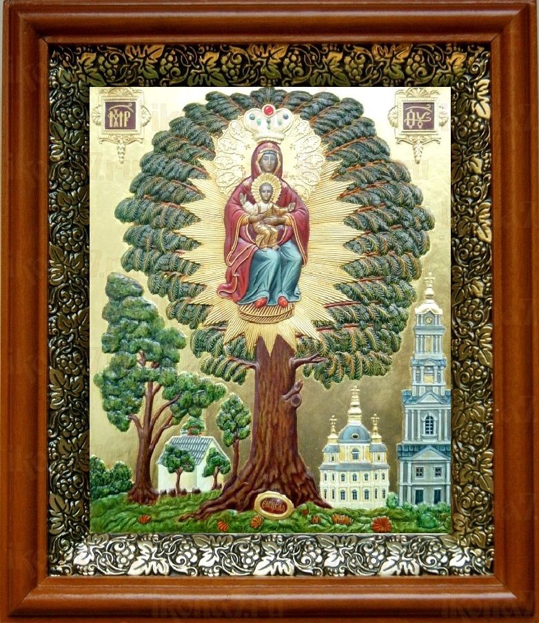 Елецкая Черниговская икона Божьей Матери в киоте с басмой Виноградная Лоза (UV-печать)(30375)