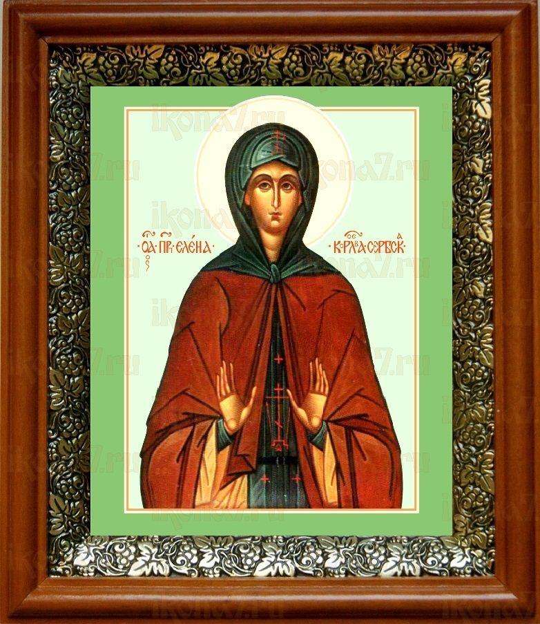 Икона Елена Сербская в киоте с басмой Виноградная Лоза (UV-печать)(30369)